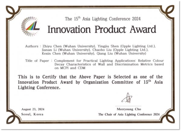 凭借在白光品质提升方面的创新实践,“清澈光”技术荣获亚洲照明大会产品创新奖,进一步印证了其在行业内的引领意义。欧普照明智能照明项目负责人陈文表示:“行业正在向更科学、更客观的光色评价体系迈进。白光标准升级既是技术进化,也是用户体验被重新定义的关键节点。”