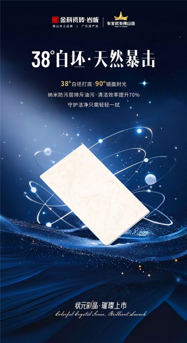 在这项聚焦原创、鼓励创新的行业盛会中,金科瓷砖凭借卓越的产品设计与技术实力,旗下“状元彩晶”系列脱颖而出,荣膺“年度原创产品大奖”。这不仅是对金科瓷砖持续深耕产品研发与美学创新的高度认可,更是“中国原创设计力量”在泛家居领域的生动彰显。