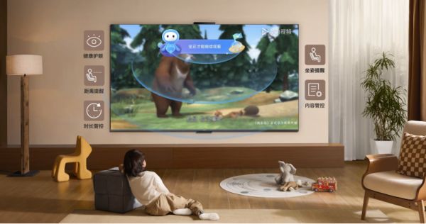 此外,得益于AI摄像头的加持,华为智慧屏 5 SE还可开启儿童坐姿、距离检测,如果孩子离电视太近或坐姿不正,智慧屏会暂停视频播放,弹出提醒,直到孩子坐正并恢复正常距离。