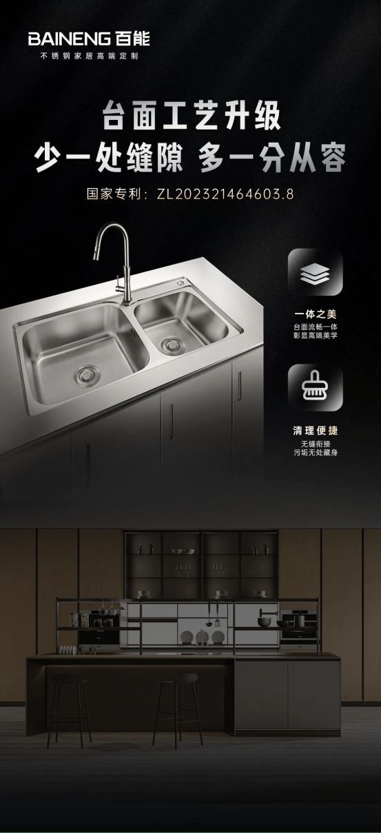 从食品级基材的选择,到榫卯结构的创新,从铝蜂窝内核的填充,到静电微喷与抗菌表面的处理,每一项核心工艺的背后,都凝聚着百能的研发智慧,159+项国家专利技术,不仅是百能硬核实力的体现,更推动着不锈钢家居行业不断向前发展。