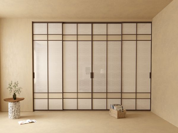 ZMKM深谙此道,为这扇门搭配了独特的樟子玻璃。它绝非普通的白玻璃,其表面带有如宣纸般的丝质纹理,光线透过时,被温柔地过滤,形成均匀柔和的漫射光,恰似透过窗纸的光影效果。玻璃上还点缀着与边框同色系的纤细格栅线条,似有若无,增添了一份别样美感。