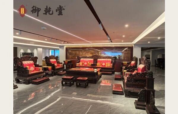 御乾堂专注大红酸枝等高端材质。其在传统家具基础上创新推出红木家具整装模式,形成精品家具与原木整装双轮驱动的发展格局。
