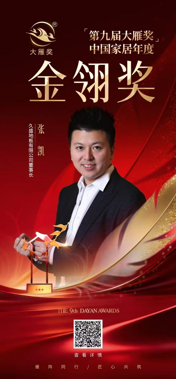 喜报!久盛地板董事长张凯先生荣膺「第九届大雁奖·中国家居年度金翎人物」奖项