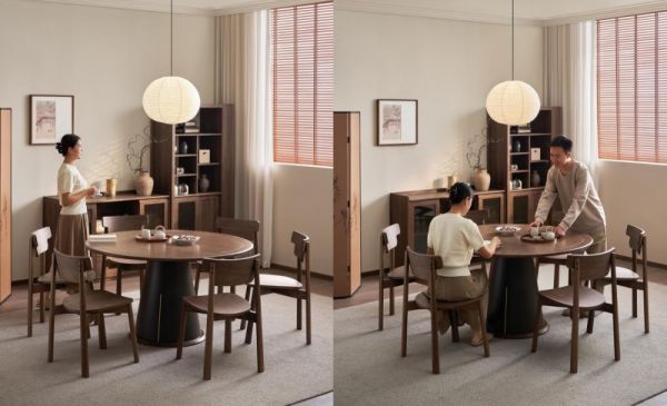 它不像老式家具那么厚重,而是用简约的线条、温润的木质和恰到好处的留白,将中式韵味与现代生活完美融合。家里有那么一两处这样的景致,瞬间就有了格调,既能承载阖家团聚的热闹氛围,又能留出一片属于自己的静谧角落。