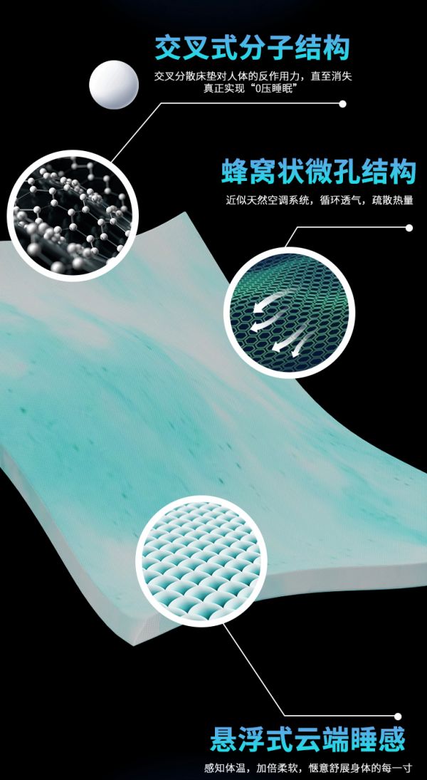 深睡立方—穗宝深睡立方层围绕优质睡眠需求,打造集清爽、舒压与环保于一体的睡眠体验。它采用凝胶材料搭配恒温控湿技术,实时调节睡眠环境的温湿度,告别闷热黏腻感。其独特的立方网格设计结合三维舒压结构,精准贴合身体曲线,助力身体深度放松。同时,选用天然环保材料制作,从源头规避有害物质,兼顾健康与环保属性,为高质量睡眠提供坚实保障。