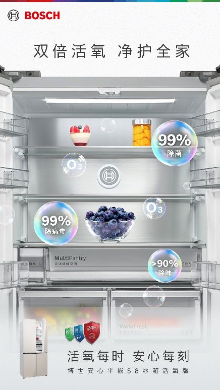 博世安心平嵌S8冰箱,活氧储鲜新体验